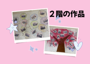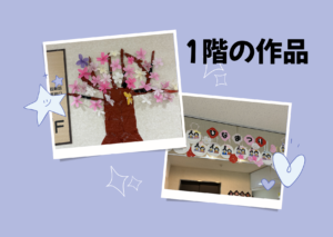 1階では、折り紙を切って桜の形にし、壁に飾りました。